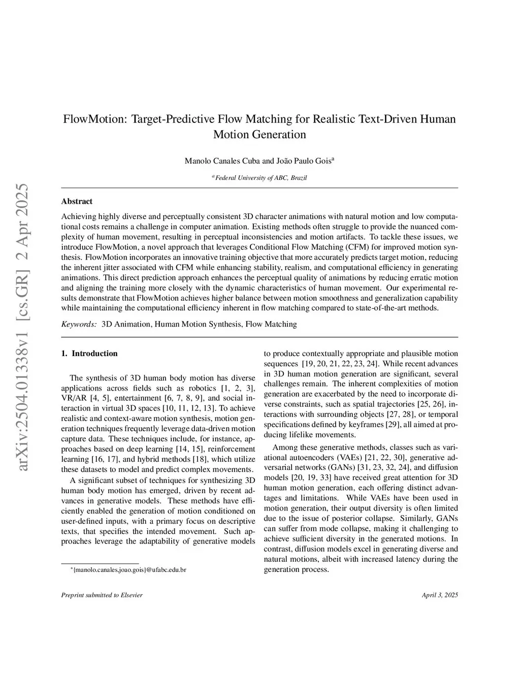 Achieving high-fidelity and temporally smooth 3D human motion generation remains a challenge, particularly within resource-constrained environments. We introduce FlowMotion, a novel method leveraging Conditional Flow Matching (CFM). FlowMotion incorporates a training objective within CFM that focuses on more accurately predicting target motion in 3D human motion generation, resulting in enhanced generation fidelity and temporal smoothness while maintaining the fast synthesis times characteristic of flow-matching-based methods. FlowMotion achieves state-of-the-art jitter performance, achieving the best jitter in the KIT dataset and the second-best jitter in the HumanML3D dataset, and a competitive FID value in both datasets. This combination provides robust and natural motion sequences, offering a promising equilibrium between generation quality and temporal naturalness.