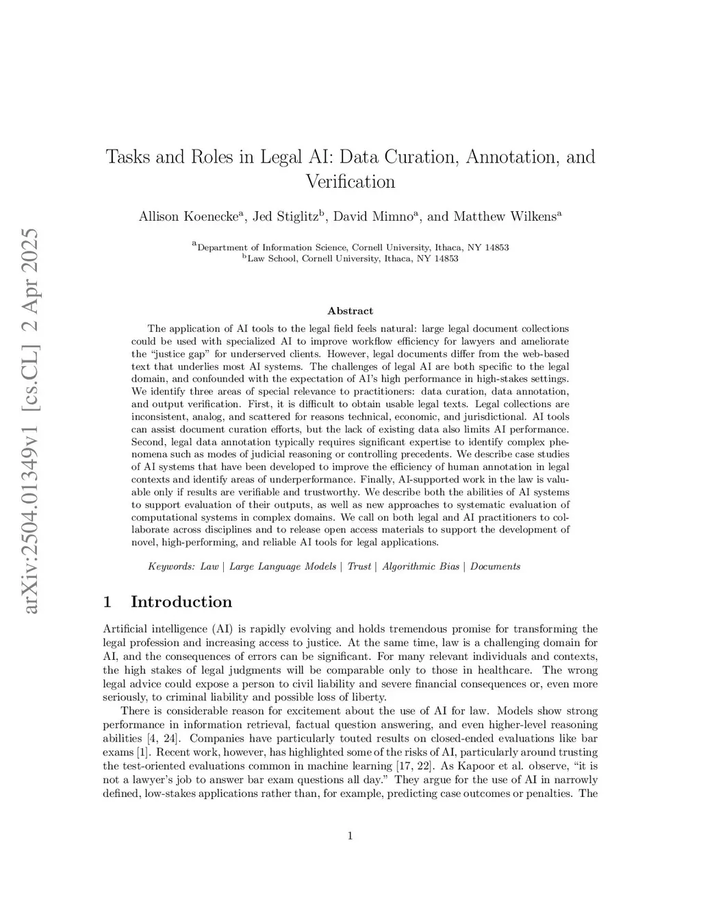 Tasks and Roles in Legal AI: Data Curation, Annotation, and Verification