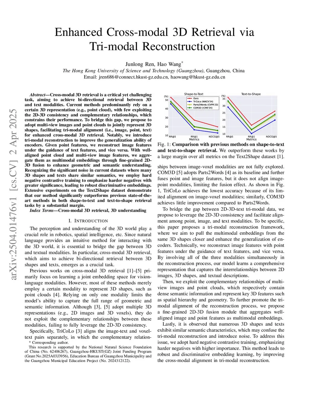 Enhanced Cross-modal 3D Retrieval via Tri-modal Reconstruction