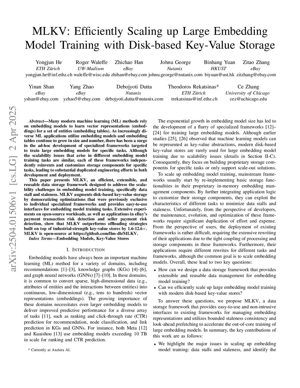 MLKV: Efficiently Scaling up Large Embedding Model Training with Disk-based Key-Value Storage