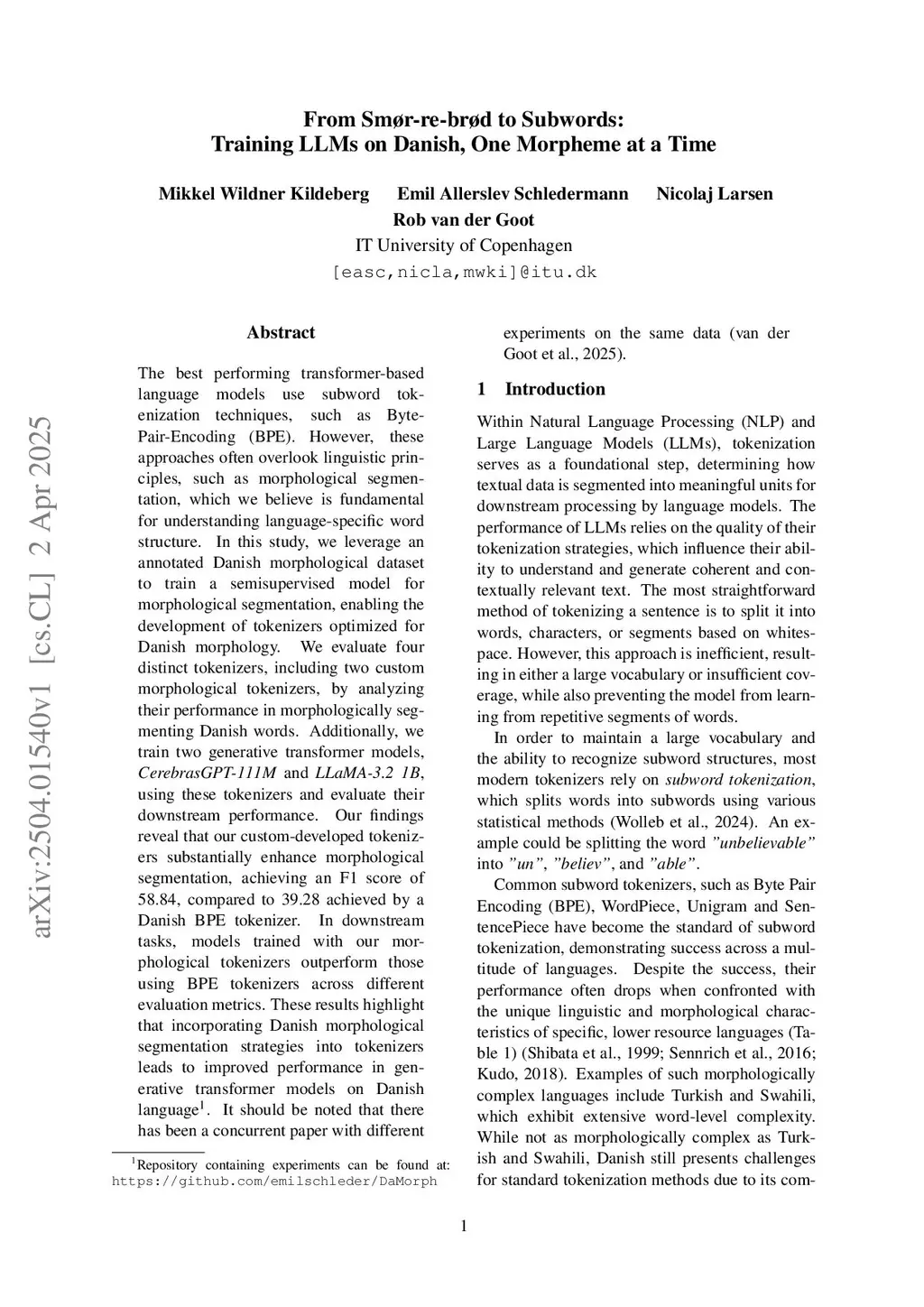 From Smør-re-brød to Subwords: Training LLMs on Danish, One Morpheme at a Time