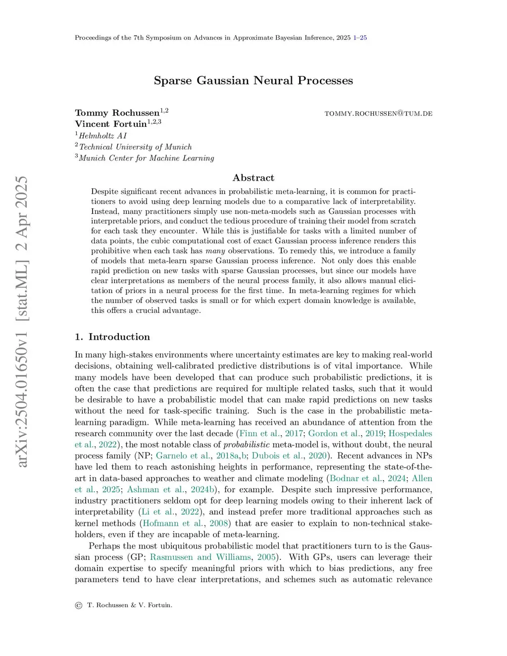 Despite significant recent advances in probabilistic meta-learning, it is common for practitioners to avoid using deep learning models due to a comparative lack of interpretability. Instead, many practitioners simply use non-meta-models such as Gaussian processes with interpretable priors, and conduct the tedious procedure of training their model from scratch for each task they encounter. While this is justifiable for tasks with a limited number of data points, the cubic computational cost of exact Gaussian process inference renders this prohibitive when each task has many observations. To remedy this, we introduce a family of models that meta-learn sparse Gaussian process inference. Not only does this enable rapid prediction on new tasks with sparse Gaussian processes, but since our models have clear interpretations as members of the neural process family, it also allows manual elicitation of priors in a neural process for the first time. In meta-learning regimes for which the number of observed tasks is small or for which expert domain knowledge is available, this offers a crucial advantage.