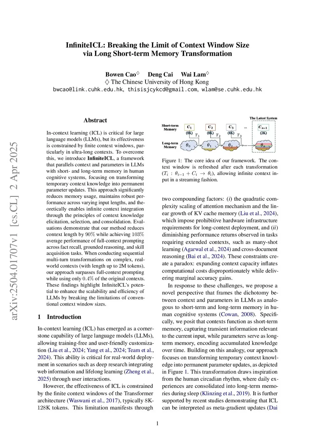InfiniteICL: Breaking the Limit of Context Window Size via Long Short-term Memory Transformation