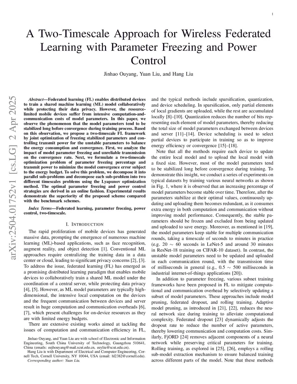 A Two-Timescale Approach for Wireless Federated Learning with Parameter Freezing and Power Control