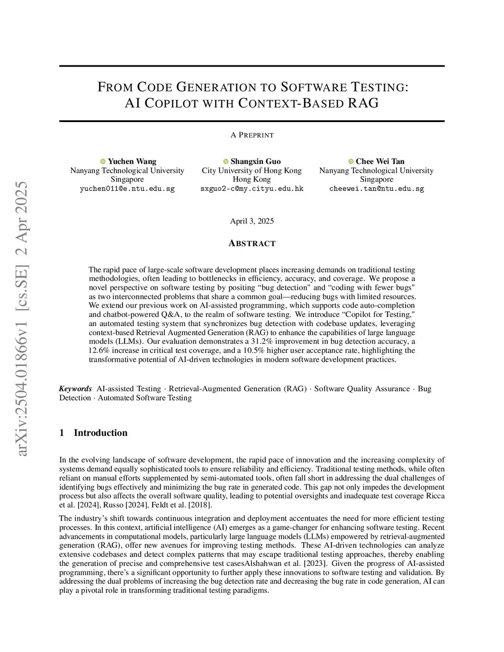 From Code Generation to Software Testing: AI Copilot with Context-Based RAG