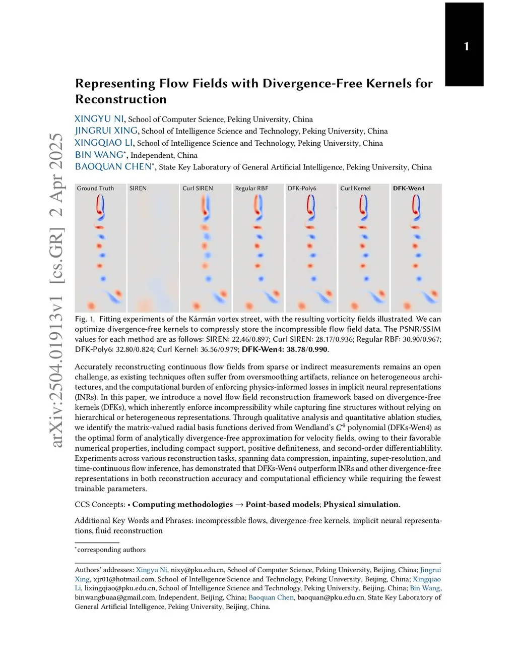 Representing Flow Fields with Divergence-Free Kernels for Reconstruction