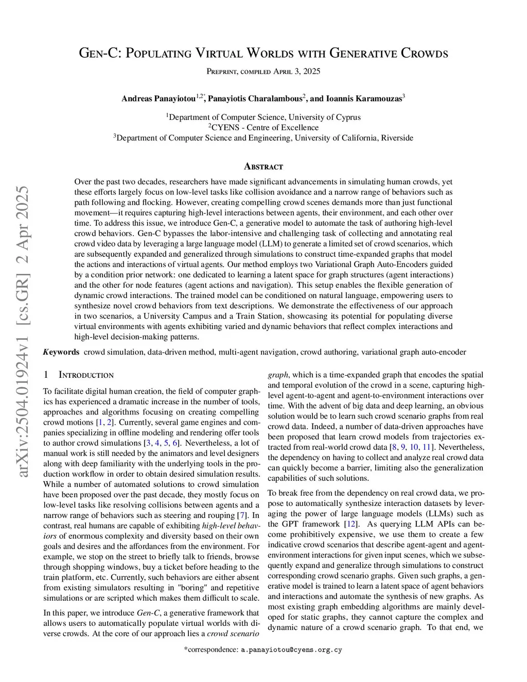 Gen-C: Populating Virtual Worlds with Generative Crowds