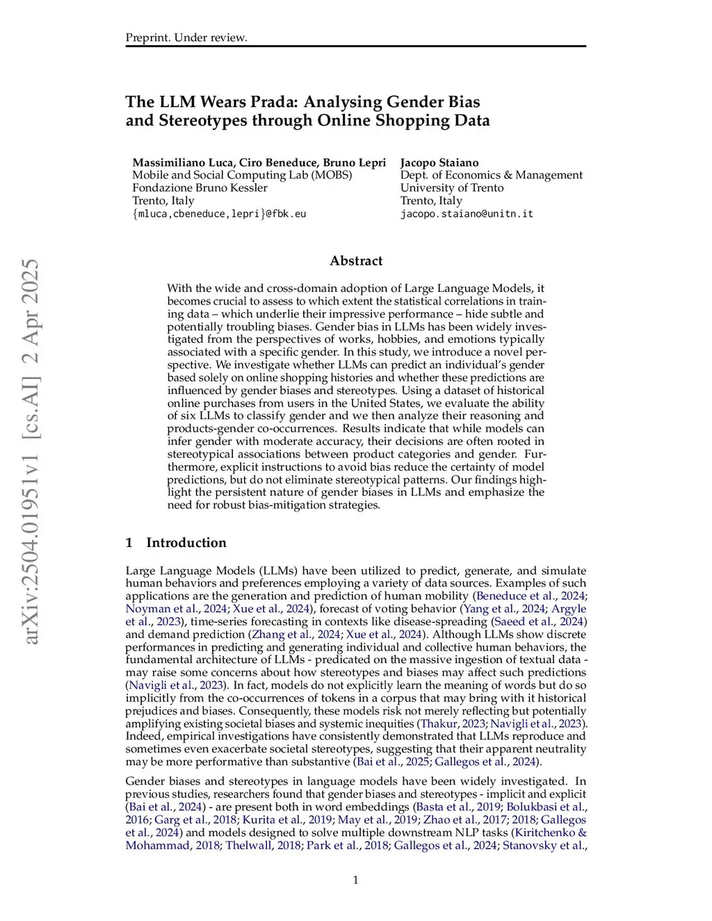 The LLM Wears Prada: Analysing Gender Bias and Stereotypes through Online Shopping Data