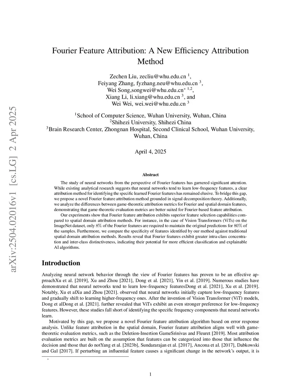 The study of neural networks from the perspective of Fourier features has garnered significant attention. While existing analytical research suggests that neural networks tend to learn low-frequency features, a clear attribution method for identifying the specific learned Fourier features has remained elusive. To bridge this gap, we propose a novel Fourier feature attribution method grounded in signal decomposition theory. Additionally, we analyze the differences between game-theoretic attribution metrics for Fourier and spatial domain features, demonstrating that game-theoretic evaluation metrics are better suited for Fourier-based feature attribution.Our experiments show that Fourier feature attribution exhibits superior feature selection capabilities compared to spatial domain attribution methods. For instance, in the case of Vision Transformers (ViTs) on the ImageNet dataset, only of the Fourier features are required to maintain the original predictions for of the samples. Furthermore, we compare the specificity of features identified by our method against traditional spatial domain attribution methods. Results reveal that Fourier features exhibit greater intra-class concentration and inter-class distinctiveness, indicating their potential for more efficient classification and explainable AI algorithms.