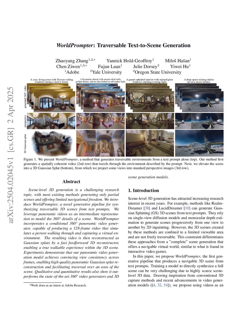 Generating 3D scenes is still a challenging task due to the lack of readily available scene data. Most existing methods only produce partial scenes and provide limited navigational freedom. We introduce a practical and scalable solution that uses 360° video as an intermediate scene representation, capturing the full-scene context and ensuring consistent visual content throughout the generation. We propose WorldPrompter, a generative pipeline that synthesizes traversable 3D scenes from text prompts. WorldPrompter incorporates a conditional 360° panoramic video generator, capable of producing a 128-frame video that simulates a person walking through and capturing a virtual environment. The resulting video is then reconstructed as Gaussian splats by a fast feedforward 3D reconstructor, enabling a true walkable experience within the 3D scene. Experiments demonstrate that our panoramic video generation model, trained with a mix of image and video data, achieves convincing spatial and temporal consistency for static scenes. This is validated by an average COLMAP matching rate of 94.6\%, allowing for high-quality panoramic Gaussian splat reconstruction and improved navigation throughout the scene. Qualitative and quantitative results also show it outperforms the state-of-the-art 360° video generators and 3D scene generation models.