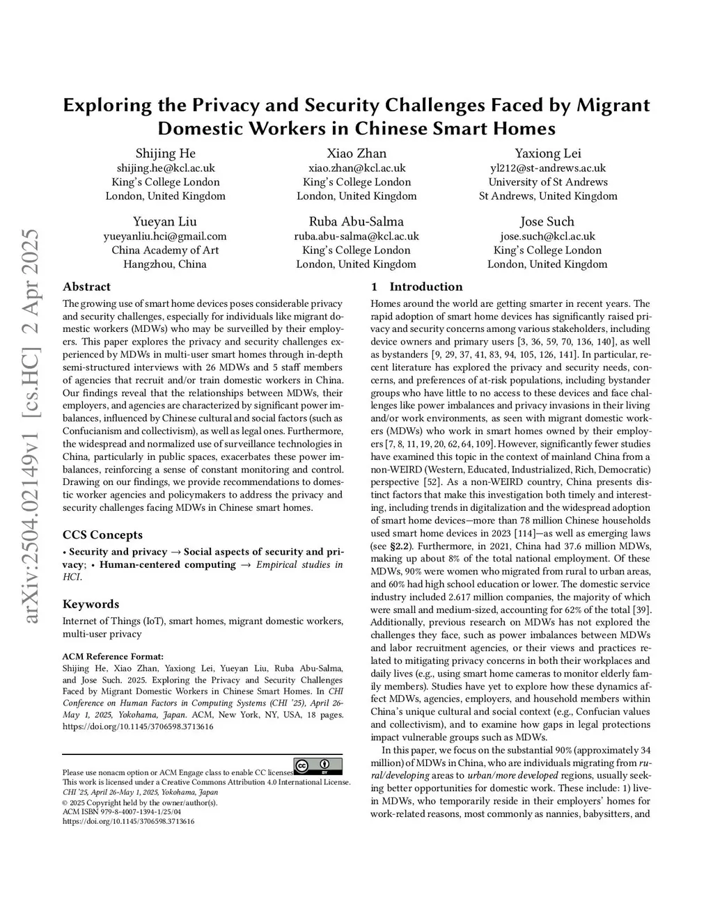 Exploring the Privacy and Security Challenges Faced by Migrant Domestic Workers in Chinese Smart Homes