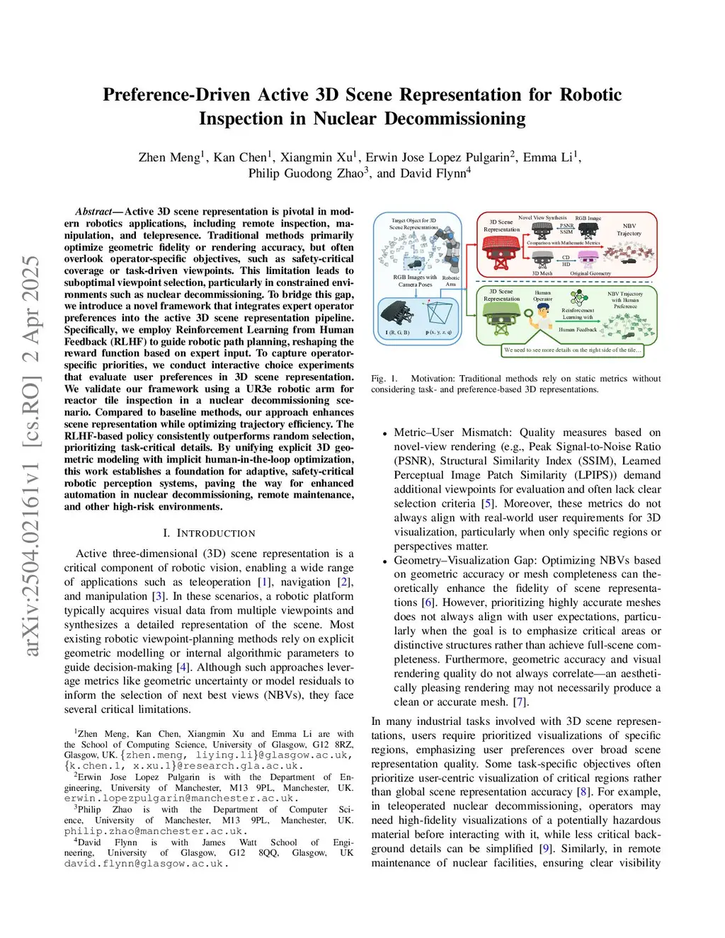 Active 3D scene representation is pivotal in modern robotics applications, including remote inspection, manipulation, and telepresence. Traditional methods primarily optimize geometric fidelity or rendering accuracy, but often overlook operator-specific objectives, such as safety-critical coverage or task-driven viewpoints. This limitation leads to suboptimal viewpoint selection, particularly in constrained environments such as nuclear decommissioning. To bridge this gap, we introduce a novel framework that integrates expert operator preferences into the active 3D scene representation pipeline. Specifically, we employ Reinforcement Learning from Human Feedback (RLHF) to guide robotic path planning, reshaping the reward function based on expert input. To capture operator-specific priorities, we conduct interactive choice experiments that evaluate user preferences in 3D scene representation. We validate our framework using a UR3e robotic arm for reactor tile inspection in a nuclear decommissioning scenario. Compared to baseline methods, our approach enhances scene representation while optimizing trajectory efficiency. The RLHF-based policy consistently outperforms random selection, prioritizing task-critical details. By unifying explicit 3D geometric modeling with implicit human-in-the-loop optimization, this work establishes a foundation for adaptive, safety-critical robotic perception systems, paving the way for enhanced automation in nuclear decommissioning, remote maintenance, and other high-risk environments.