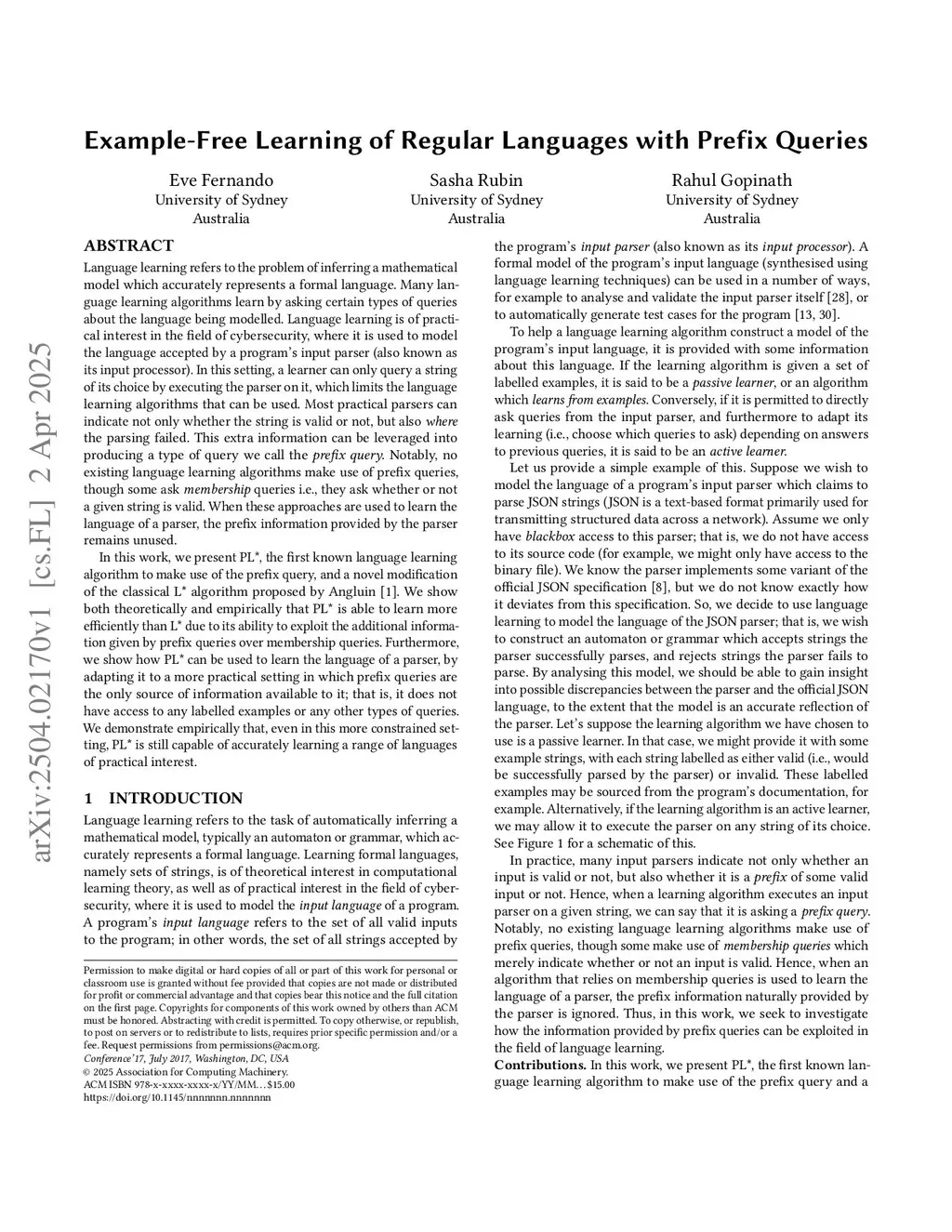 Language learning refers to the problem of inferring a mathematical model which accurately represents a formal language. Many language learning algorithms learn by asking certain types of queries about the language being modeled. Language learning is of practical interest in the field of cybersecurity, where it is used to model the language accepted by a program's input parser (also known as its input processor). In this setting, a learner can only query a string of its choice by executing the parser on it, which limits the language learning algorithms that can be used. Most practical parsers can indicate not only whether the string is valid or not, but also where the parsing failed. This extra information can be leveraged into producing a type of query we call the prefix query. Notably, no existing language learning algorithms make use of prefix queries, though some ask membership queries i.e., they ask whether or not a given string is valid. When these approaches are used to learn the language of a parser, the prefix information provided by the parser remains unused.In this work, we present PL*, the first known language learning algorithm to make use of the prefix query, and a novel modification of the classical L* algorithm. We show both theoretically and empirically that PL* is able to learn more efficiently than L* due to its ability to exploit the additional information given by prefix queries over membership queries. Furthermore, we show how PL* can be used to learn the language of a parser, by adapting it to a more practical setting in which prefix queries are the only source of information available to it; that is, it does not have access to any labelled examples or any other types of queries. We demonstrate empirically that, even in this more constrained setting, PL* is still capable of accurately learning a range of languages of practical interest.