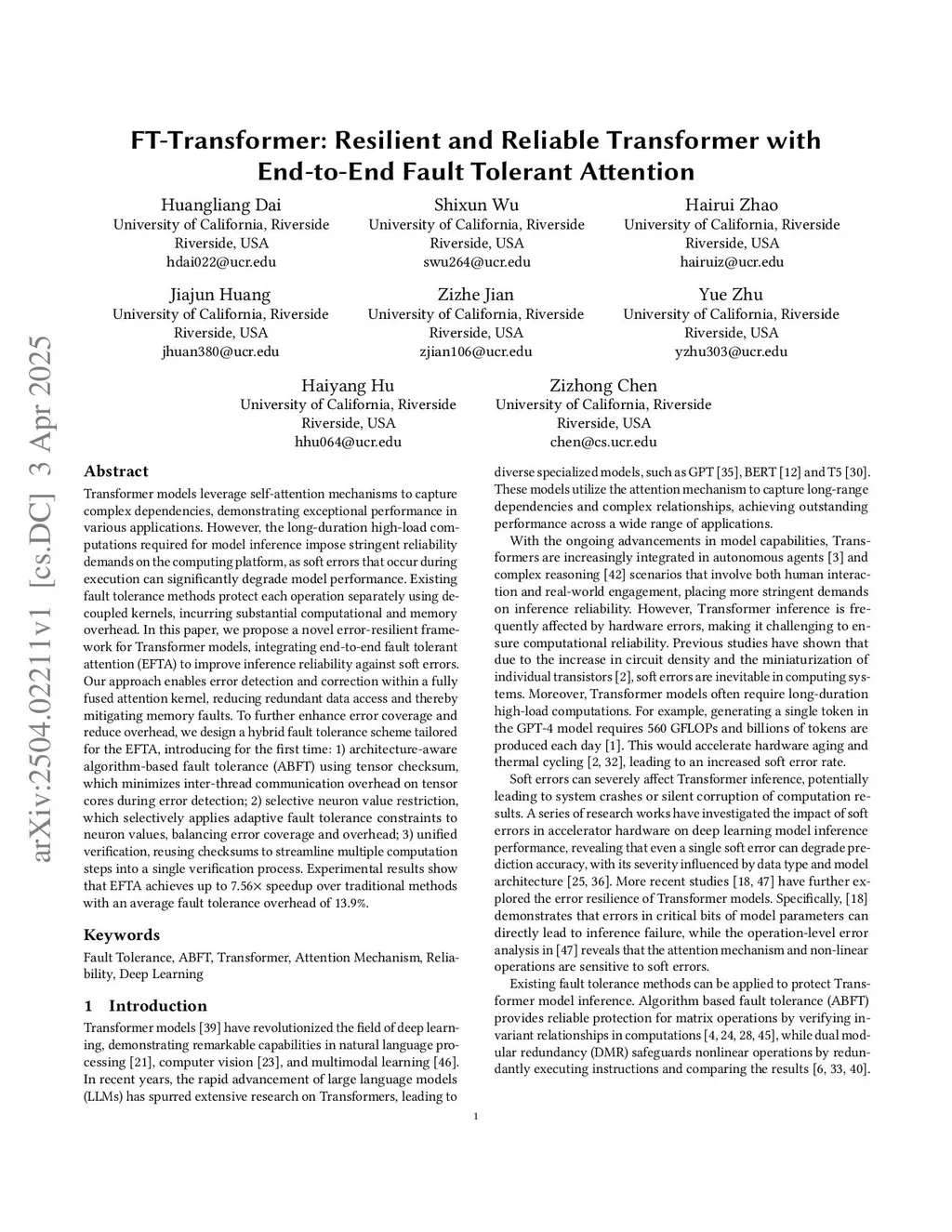 FT-Transformer: Resilient and Reliable Transformer with End-to-End Fault Tolerant Attention