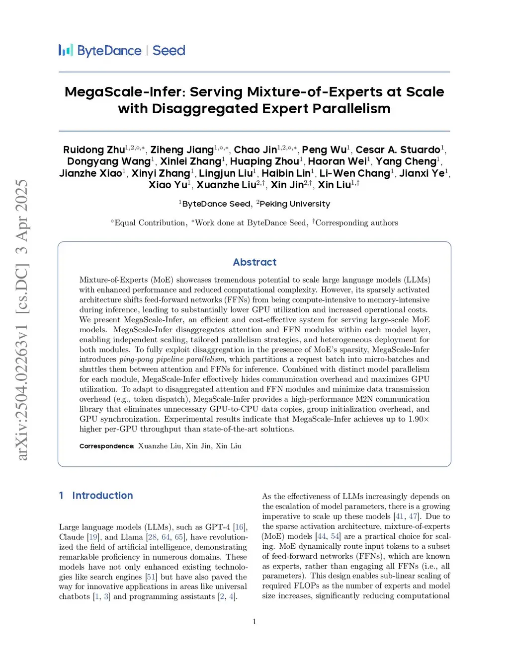 MegaScale-Infer: Serving Mixture-of-Experts at Scale with Disaggregated Expert Parallelism