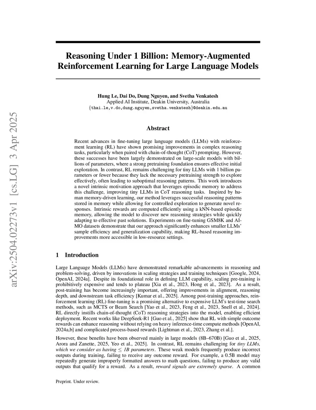 Reasoning Under 1 Billion: Memory-Augmented Reinforcement Learning for Large Language Models