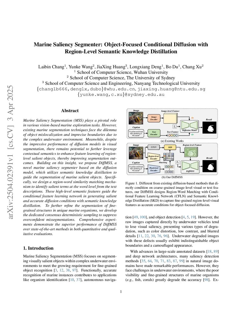 Marine Saliency Segmenter: Object-Focused Conditional Diffusion with Region-Level Semantic Knowledge Distillation