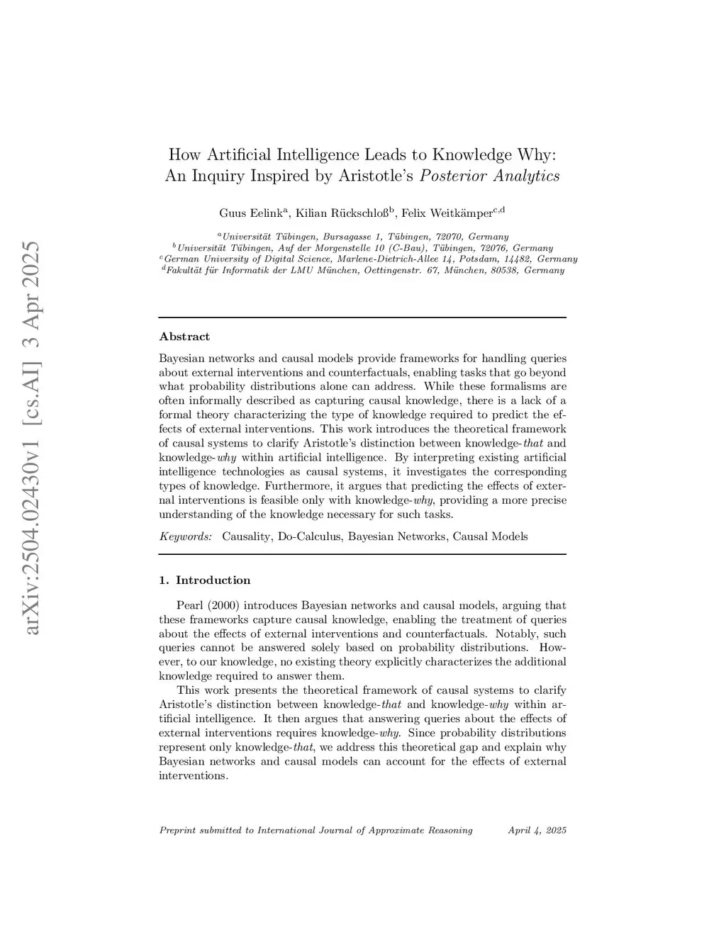 Bayesian networks and causal models provide frameworks for handling queries about external interventions and counterfactuals, enabling tasks that go beyond what probability distributions alone can address. While these formalisms are often informally described as capturing causal knowledge, there is a lack of a formal theory characterizing the type of knowledge required to predict the effects of external interventions. This work introduces the theoretical framework of causal systems to clarify Aristotle's distinction between knowledge that and knowledge why within artificial intelligence. By interpreting existing artificial intelligence technologies as causal systems, it investigates the corresponding types of knowledge. Furthermore, it argues that predicting the effects of external interventions is feasible only with knowledge why, providing a more precise understanding of the knowledge necessary for such tasks.
