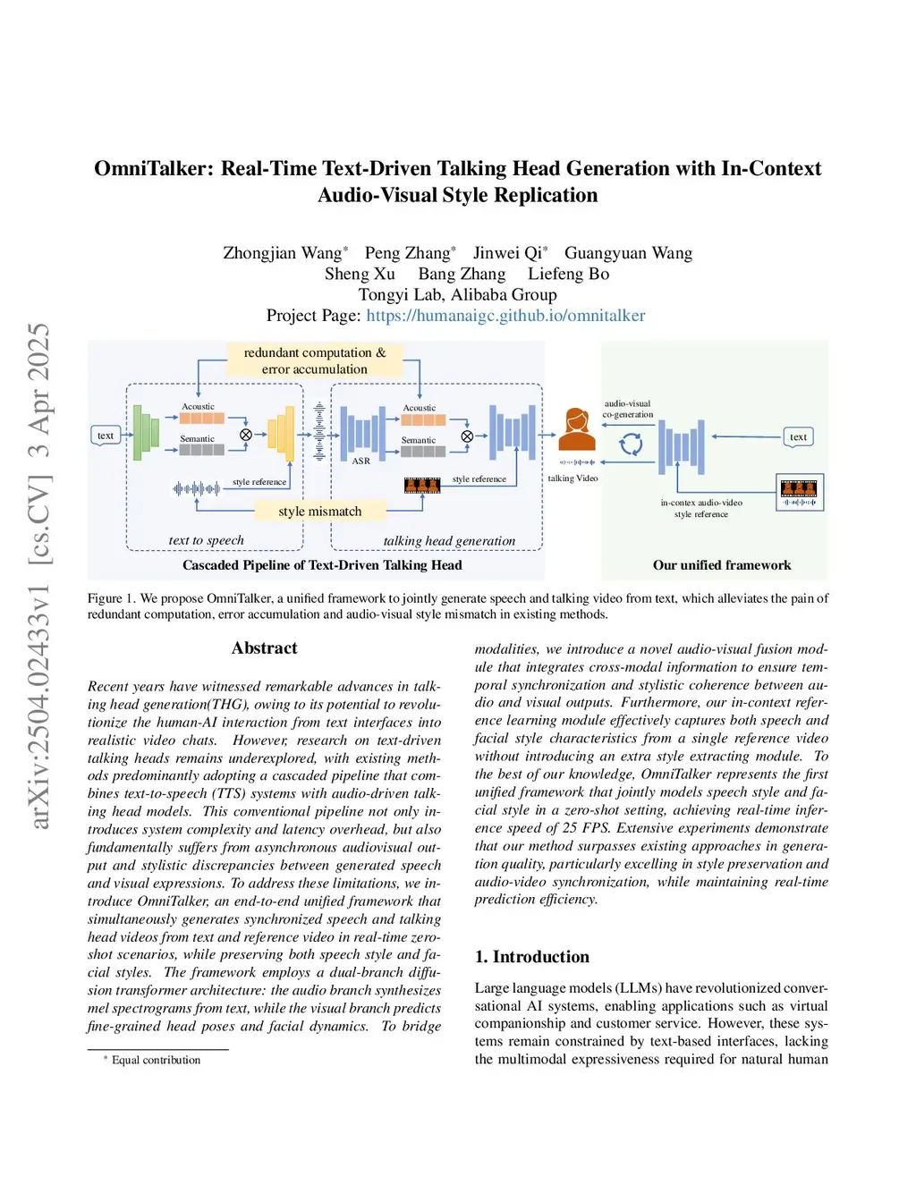 Although significant progress has been made in audio-driven talking head generation, text-driven methods remain underexplored. In this work, we present OmniTalker, a unified framework that jointly generates synchronized talking audio-video content from input text while emulating the speaking and facial movement styles of the target identity, including speech characteristics, head motion, and facial dynamics. Our framework adopts a dual-branch diffusion transformer (DiT) architecture, with one branch dedicated to audio generation and the other to video synthesis. At the shallow layers, cross-modal fusion modules are introduced to integrate information between the two modalities. In deeper layers, each modality is processed independently, with the generated audio decoded by a vocoder and the video rendered using a GAN-based high-quality visual renderer. Leveraging the in-context learning capability of DiT through a masked-infilling strategy, our model can simultaneously capture both audio and visual styles without requiring explicit style extraction modules. Thanks to the efficiency of the DiT backbone and the optimized visual renderer, OmniTalker achieves real-time inference at 25 FPS. To the best of our knowledge, OmniTalker is the first one-shot framework capable of jointly modeling speech and facial styles in real time. Extensive experiments demonstrate its superiority over existing methods in terms of generation quality, particularly in preserving style consistency and ensuring precise audio-video synchronization, all while maintaining efficient inference.