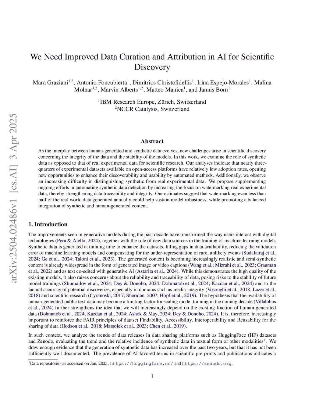 We Need Improved Data Curation and Attribution in AI for Scientific Discovery