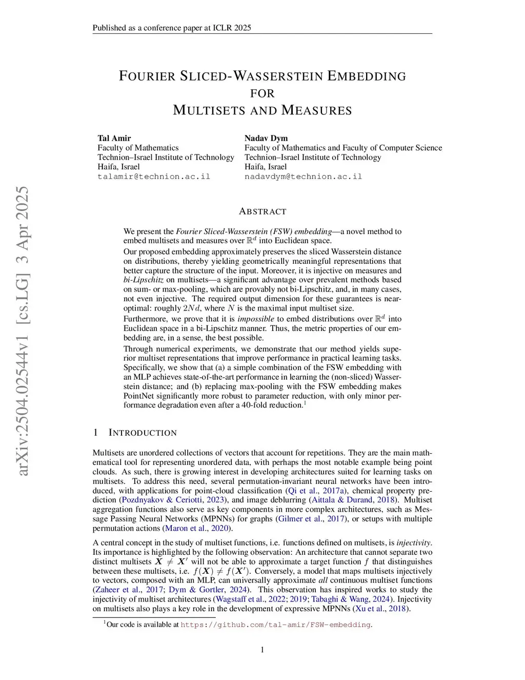 Fourier Sliced-Wasserstein Embedding for Multisets and Measures