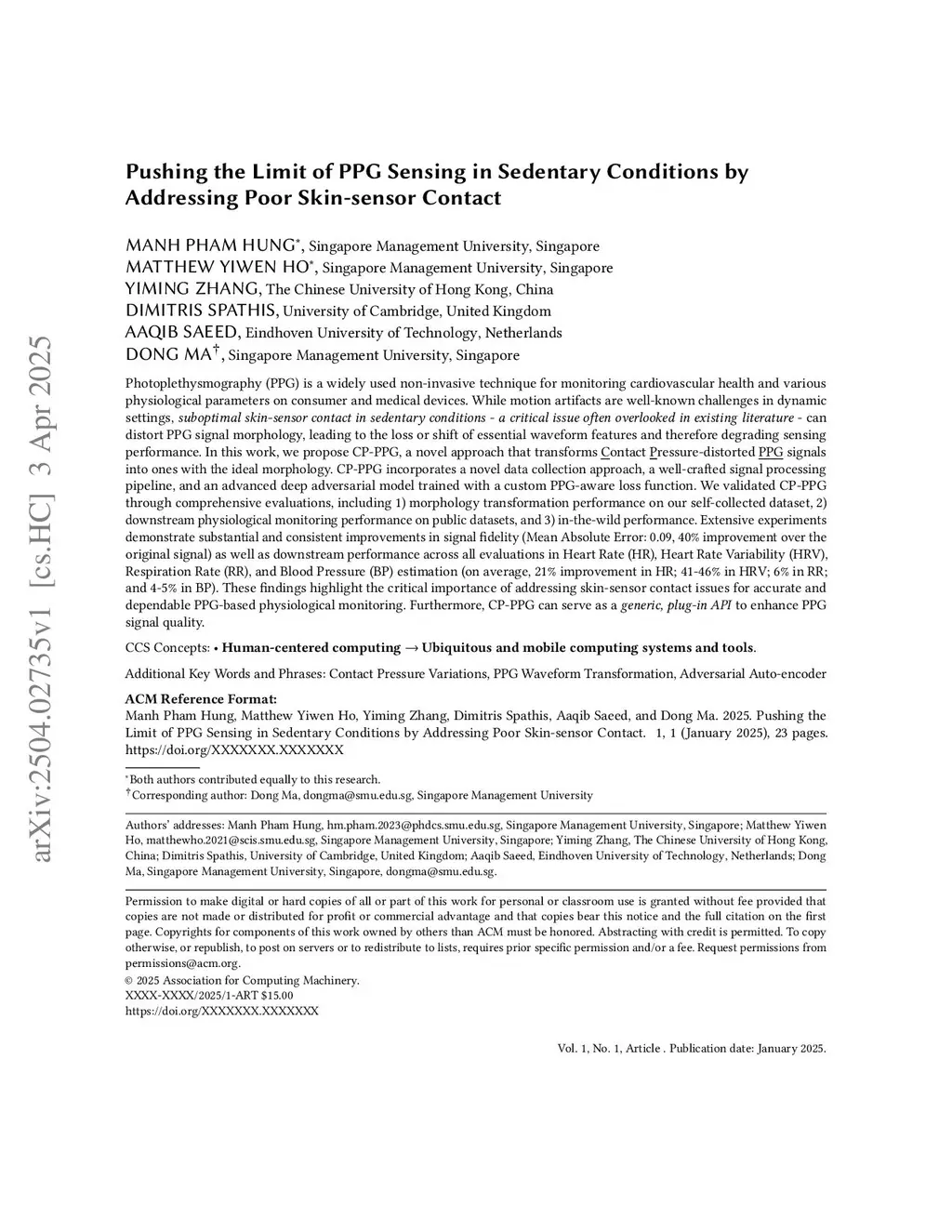 Photoplethysmography (PPG) is a widely adopted, non-invasive technique for monitoring cardiovascular health and physiological parameters in both consumer and clinical settings. While motion artifacts in dynamic environments have been extensively studied, suboptimal skin-sensor contact in sedentary conditions - a critical yet underexplored issue - can distort PPG waveform morphology, leading to the loss or misalignment of key features and compromising sensing accuracy. In this work, we propose CP-PPG, a novel framework that transforms Contact Pressure-distorted PPG signals into high-fidelity waveforms with ideal morphology. CP-PPG integrates a custom data collection protocol, a carefully designed signal processing pipeline, and a novel deep adversarial model trained with a custom PPG-aware loss function. We validated CP-PPG through comprehensive evaluations, including 1) morphology transformation performance on our self-collected dataset, 2) downstream physiological monitoring performance on public datasets, and 3) in-the-wild study. Extensive experiments demonstrate substantial and consistent improvements in signal fidelity (Mean Absolute Error: 0.09, 40% improvement over the original signal) as well as downstream performance across all evaluations in Heart Rate (HR), Heart Rate Variability (HRV), Respiration Rate (RR), and Blood Pressure (BP) estimation (on average, 21% improvement in HR; 41-46% in HRV; 6% in RR; and 4-5% in BP). These findings highlight the critical importance of addressing skin-sensor contact issues to enhance the reliability and effectiveness of PPG-based physiological monitoring. CP-PPG thus holds significant potential to improve the accuracy of wearable health technologies in clinical and consumer applications.
