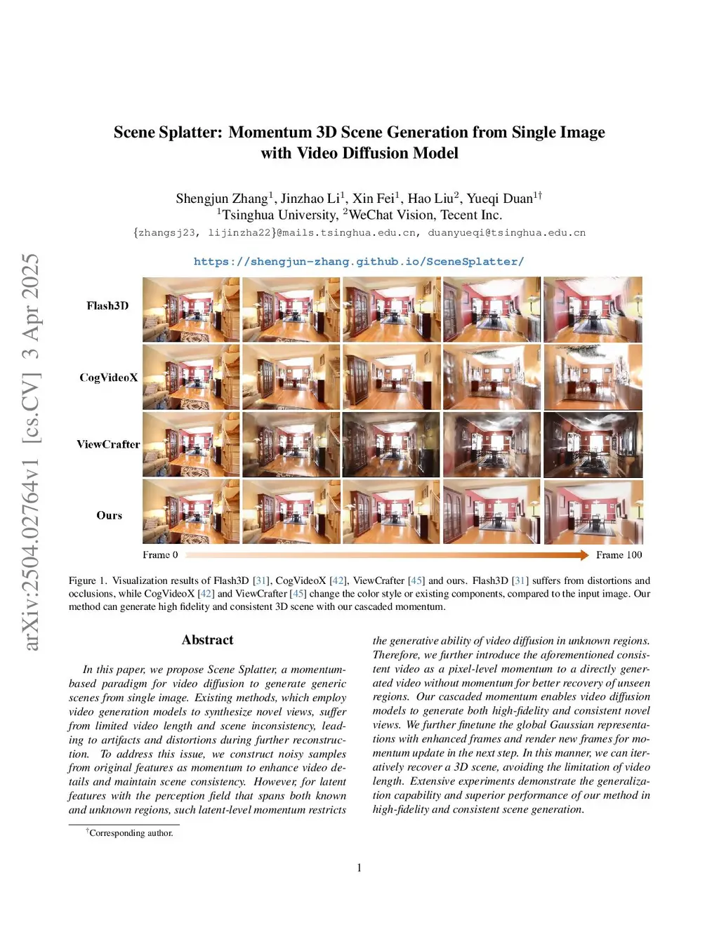 Scene Splatter: Momentum 3D Scene Generation from Single Image with Video Diffusion Model