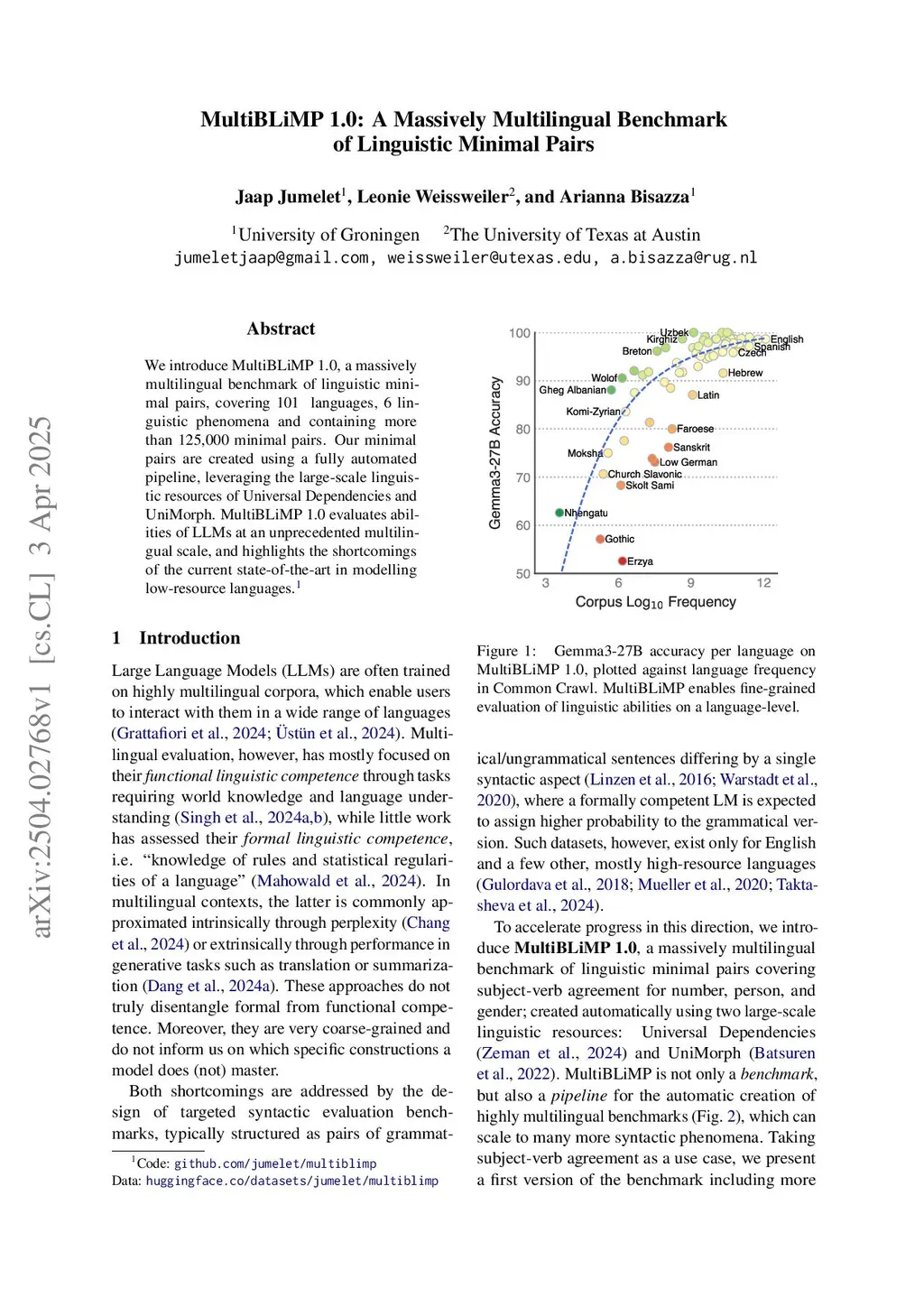 MultiBLiMP 1.0: A Massively Multilingual Benchmark of Linguistic Minimal Pairs