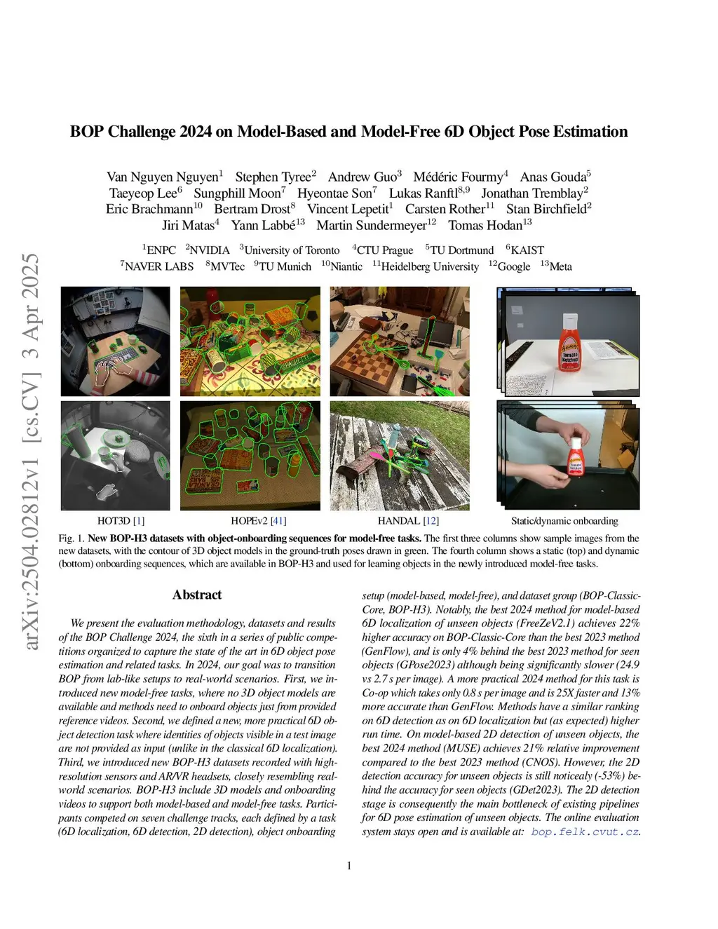 BOP Challenge 2024 on Model-Based and Model-Free 6D Object Pose Estimation