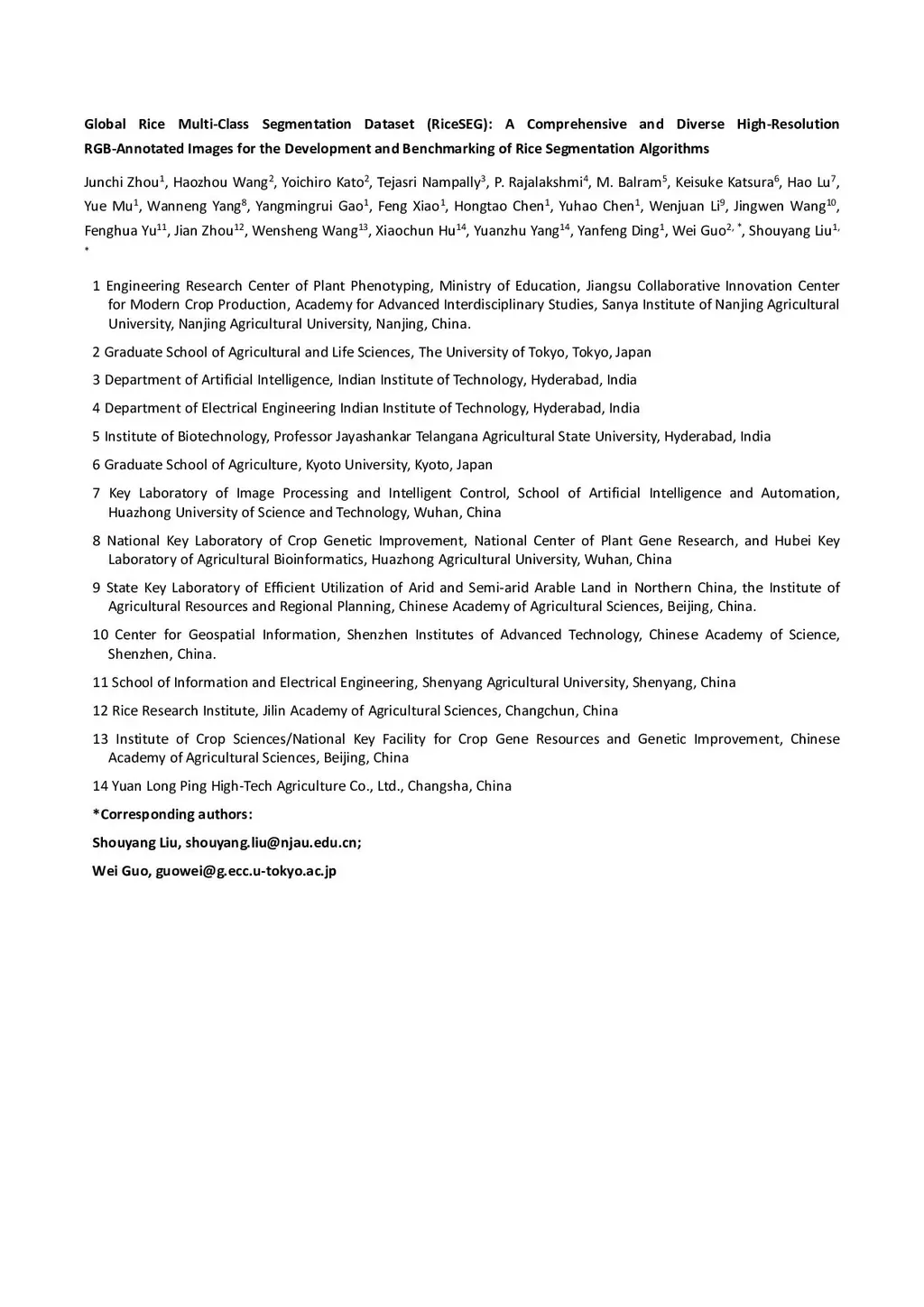 Global Rice Multi-Class Segmentation Dataset (RiceSEG): A Comprehensive and Diverse High-Resolution RGB-Annotated Images for the Development and Benchmarking of Rice Segmentation Algorithms