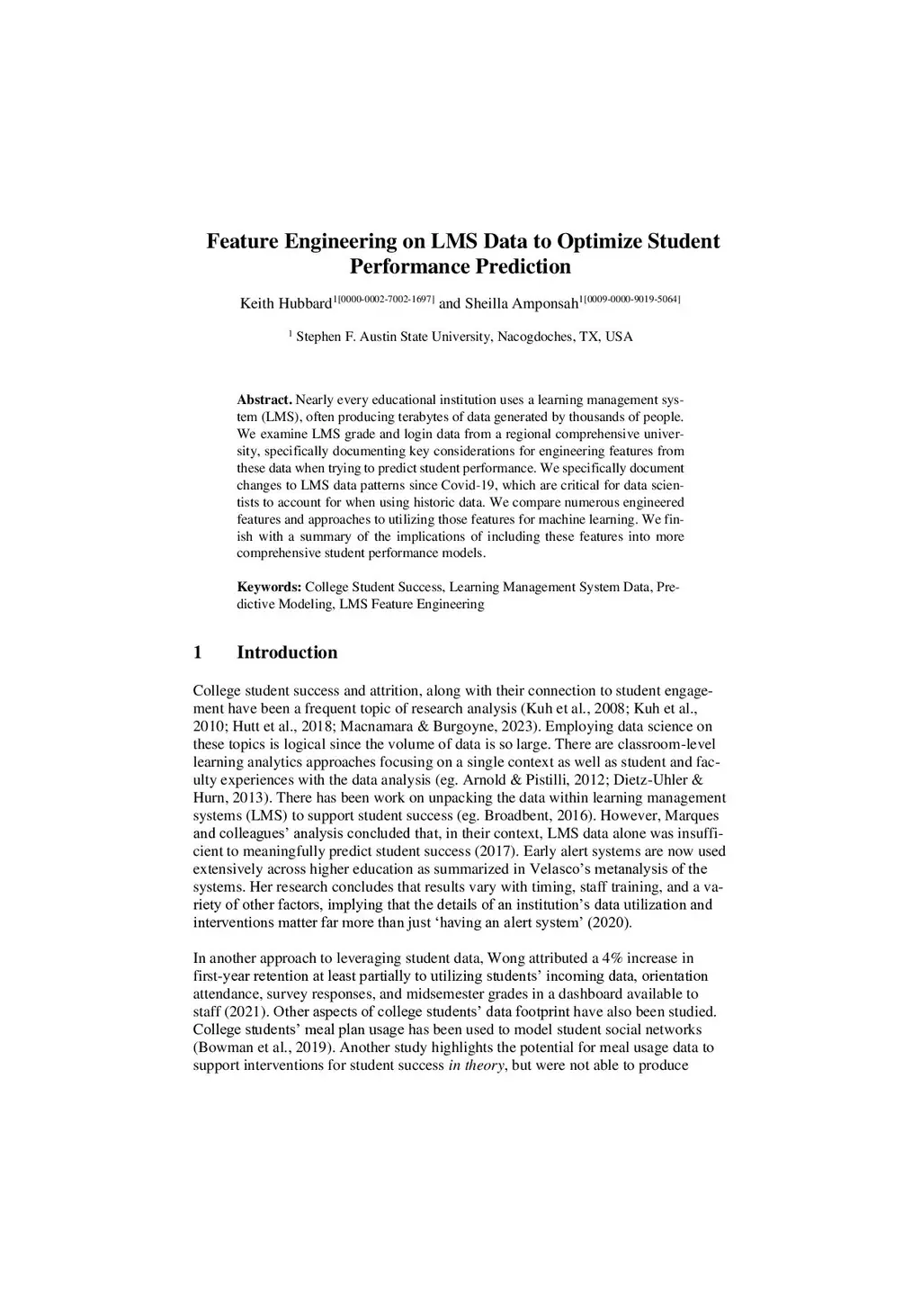 Feature Engineering on LMS Data to Optimize Student Performance Prediction