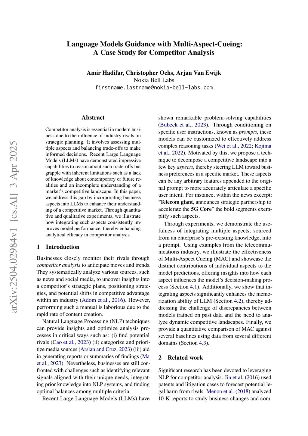 Language Models Guidance with Multi-Aspect-Cueing: A Case Study for Competitor Analysis
