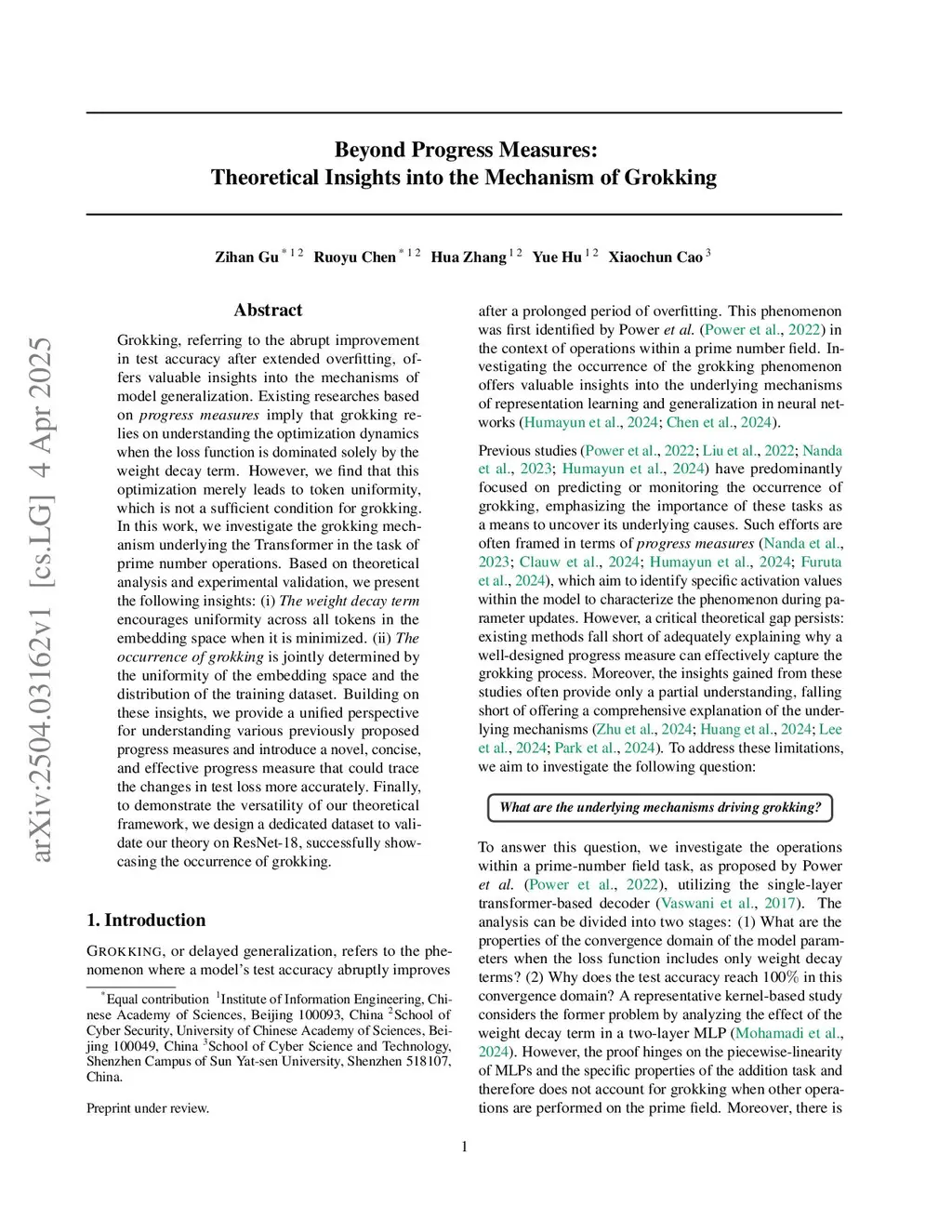 Grokking, referring to the abrupt improvement in test accuracy after extended overfitting, offers valuable insights into the mechanisms of model generalization. Existing researches based on progress measures imply that grokking relies on understanding the optimization dynamics when the loss function is dominated solely by the weight decay term. However, we find that this optimization merely leads to token uniformity, which is not a sufficient condition for grokking. In this work, we investigate the grokking mechanism underlying the Transformer in the task of prime number operations. Based on theoretical analysis and experimental validation, we present the following insights: (i) The weight decay term encourages uniformity across all tokens in the embedding space when it is minimized. (ii) The occurrence of grokking is jointly determined by the uniformity of the embedding space and the distribution of the training dataset. Building on these insights, we provide a unified perspective for understanding various previously proposed progress measures and introduce a novel, concise, and effective progress measure that could trace the changes in test loss more accurately. Finally, to demonstrate the versatility of our theoretical framework, we design a dedicated dataset to validate our theory on ResNet-18, successfully showcasing the occurrence of grokking. The code is released atthis https URL.