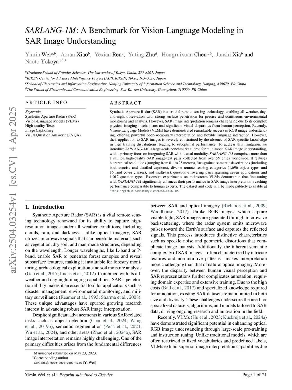 SARLANG-1M: A Benchmark for Vision-Language Modeling in SAR Image Understanding
