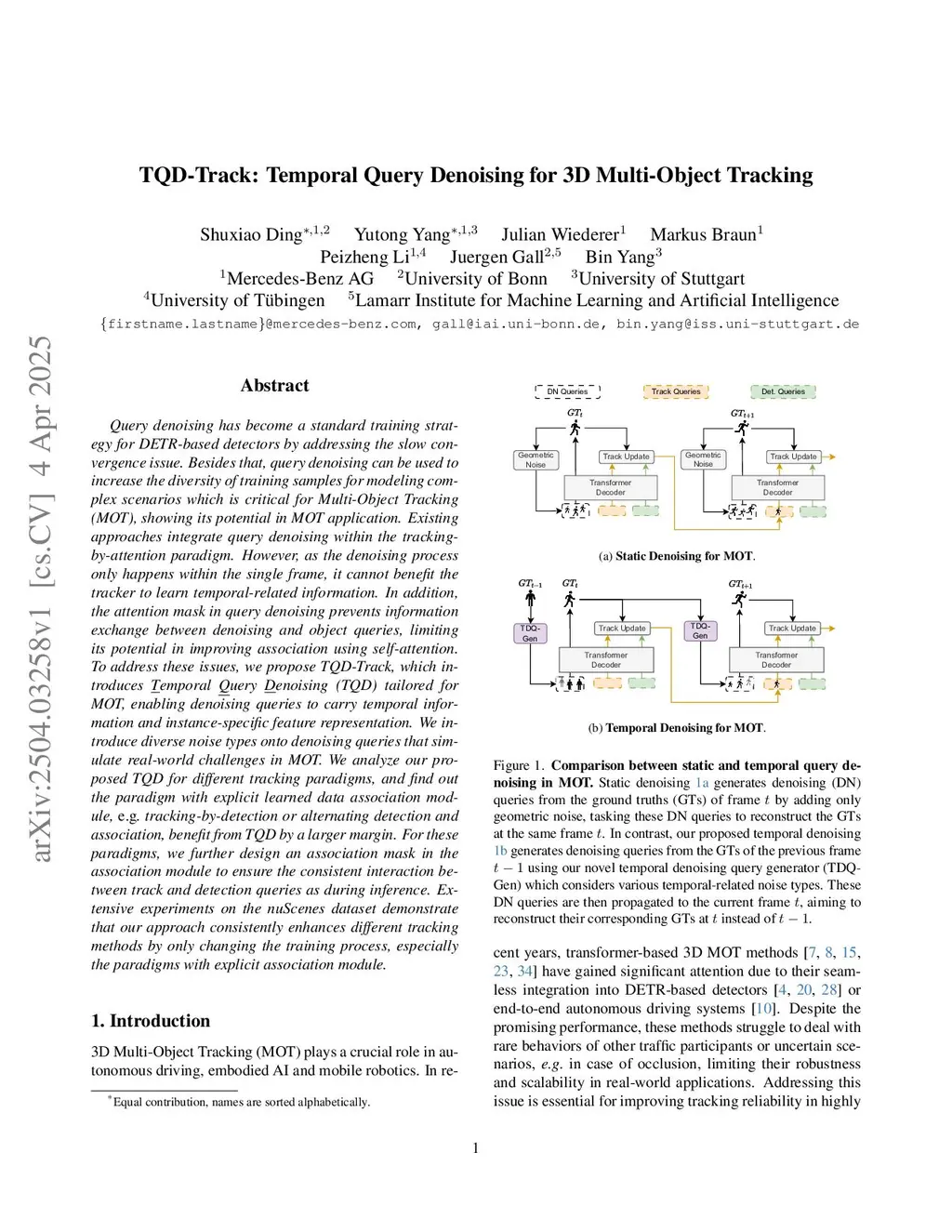 TQD-Track: Temporal Query Denoising for 3D Multi-Object Tracking