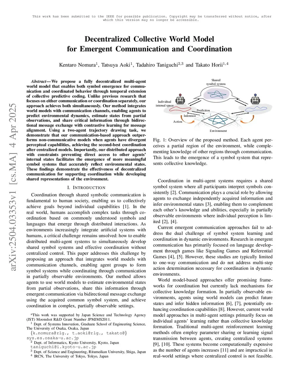 Decentralized Collective World Model for Emergent Communication and Coordination