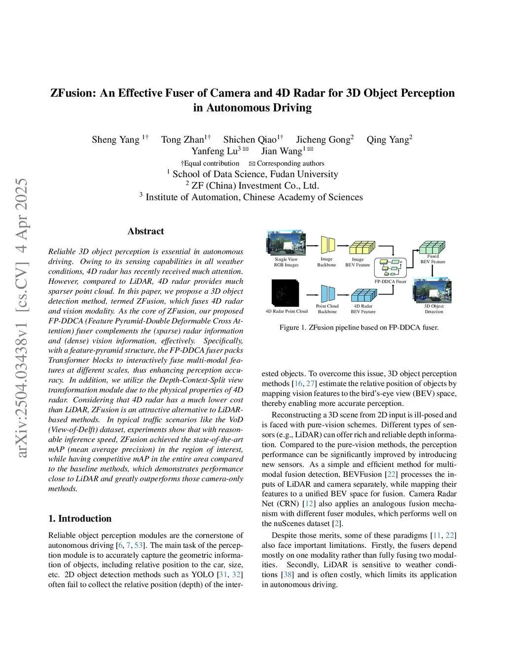 ZFusion: An Effective Fuser of Camera and 4D Radar for 3D Object Perception in Autonomous Driving