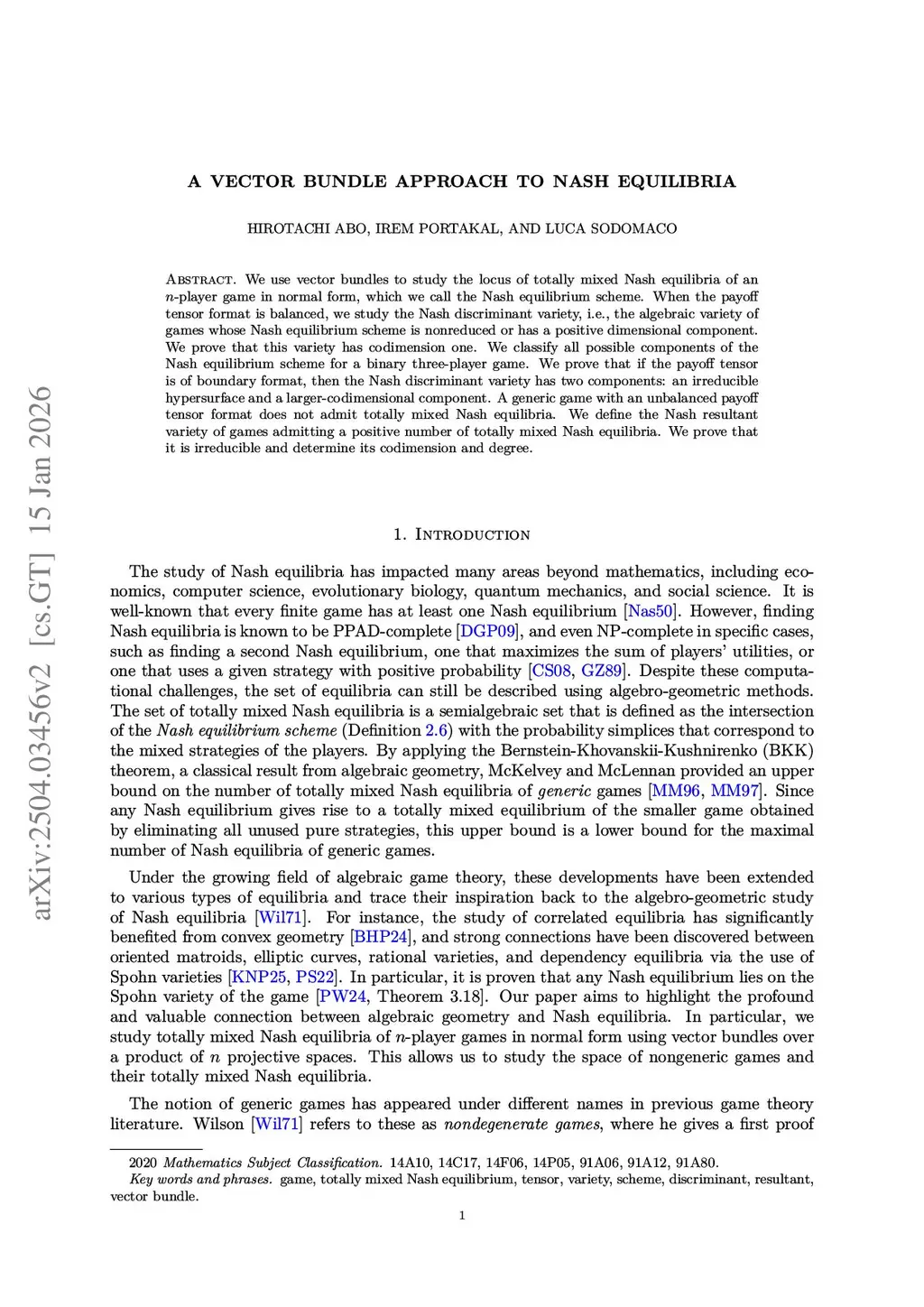 A vector bundle approach to Nash equilibria