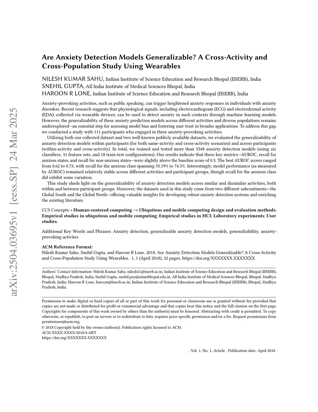 Are Anxiety Detection Models Generalizable? A Cross-Activity and Cross-Population Study Using Wearables