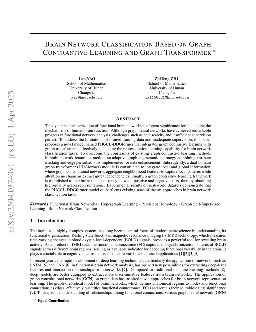 Brain Network Classification Based on Graph Contrastive Learning and Graph Transformer