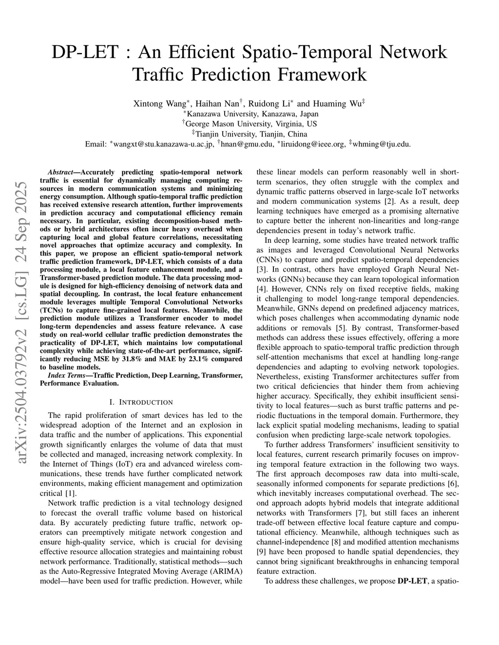 DP-LET: An Efficient Spatio-Temporal Network Traffic Prediction Framework