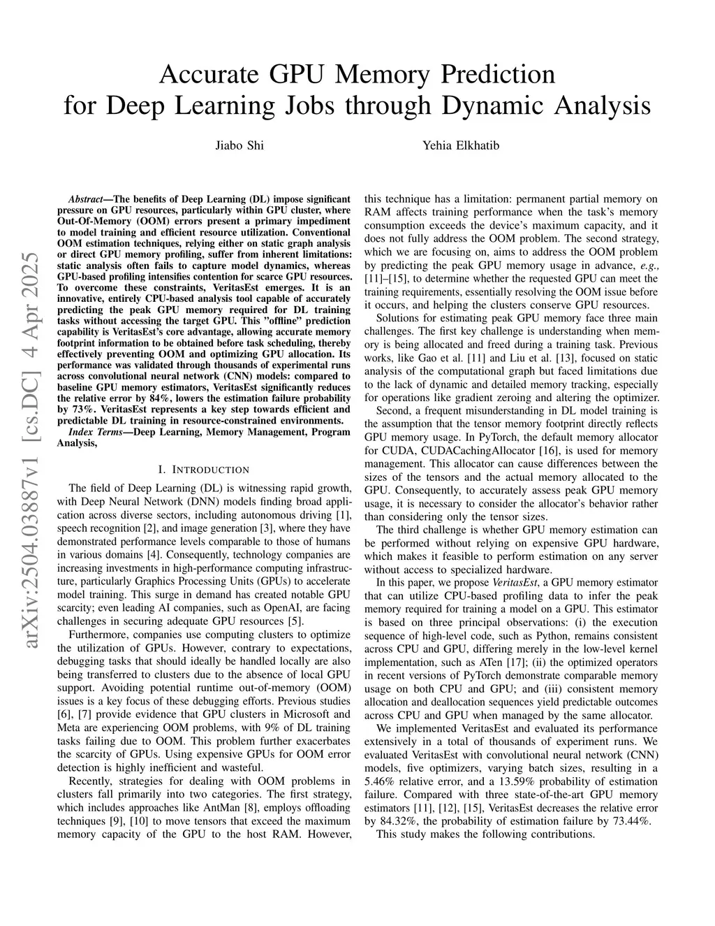 Accurate GPU Memory Prediction for Deep Learning Jobs through Dynamic Analysis