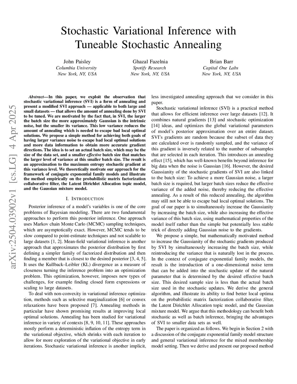 Stochastic Variational Inference with Tuneable Stochastic Annealing
