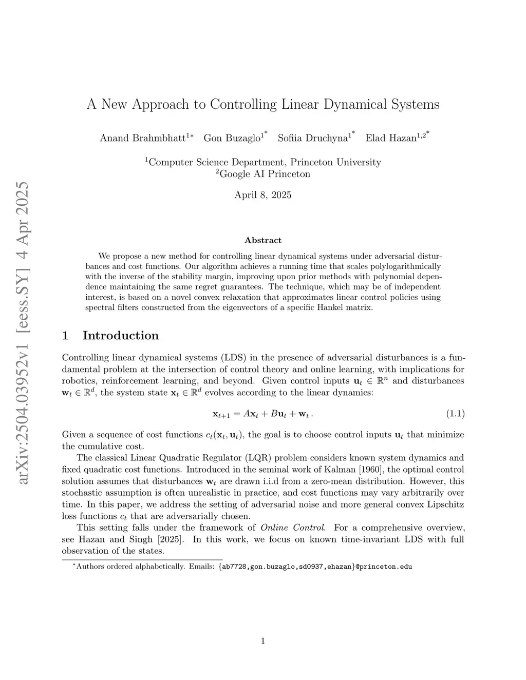 We propose a new method for controlling linear dynamical systems under adversarial disturbances and cost functions. Our algorithm achieves a running time that scales polylogarithmically with the inverse of the stability margin, improving upon prior methods with polynomial dependence maintaining the same regret guarantees. The technique, which may be of independent interest, is based on a novel convex relaxation that approximates linear control policies using spectral filters constructed from the eigenvectors of a specific Hankel matrix.