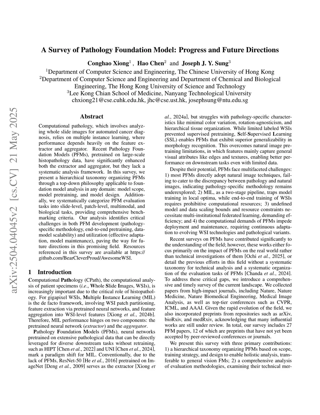 Computational pathology, which involves analyzing whole slide images for automated cancer diagnosis, relies on multiple instance learning, where performance depends heavily on the feature extractor and aggregator. Recent Pathology Foundation Models (PFMs), pretrained on large-scale histopathology data, have significantly enhanced both the extractor and aggregator, but they lack a systematic analysis framework. In this survey, we present a hierarchical taxonomy organizing PFMs through a top-down philosophy applicable to foundation model analysis in any domain: model scope, model pretraining, and model design. Additionally, we systematically categorize PFM evaluation tasks into slide-level, patch-level, multimodal, and biological tasks, providing comprehensive benchmarking criteria. Our analysis identifies critical challenges in both PFM development (pathology-specific methodology, end-to-end pretraining, data-model scalability) and utilization (effective adaptation, model maintenance), paving the way for future directions in this promising field. Resources referenced in this survey are available atthis https URL.