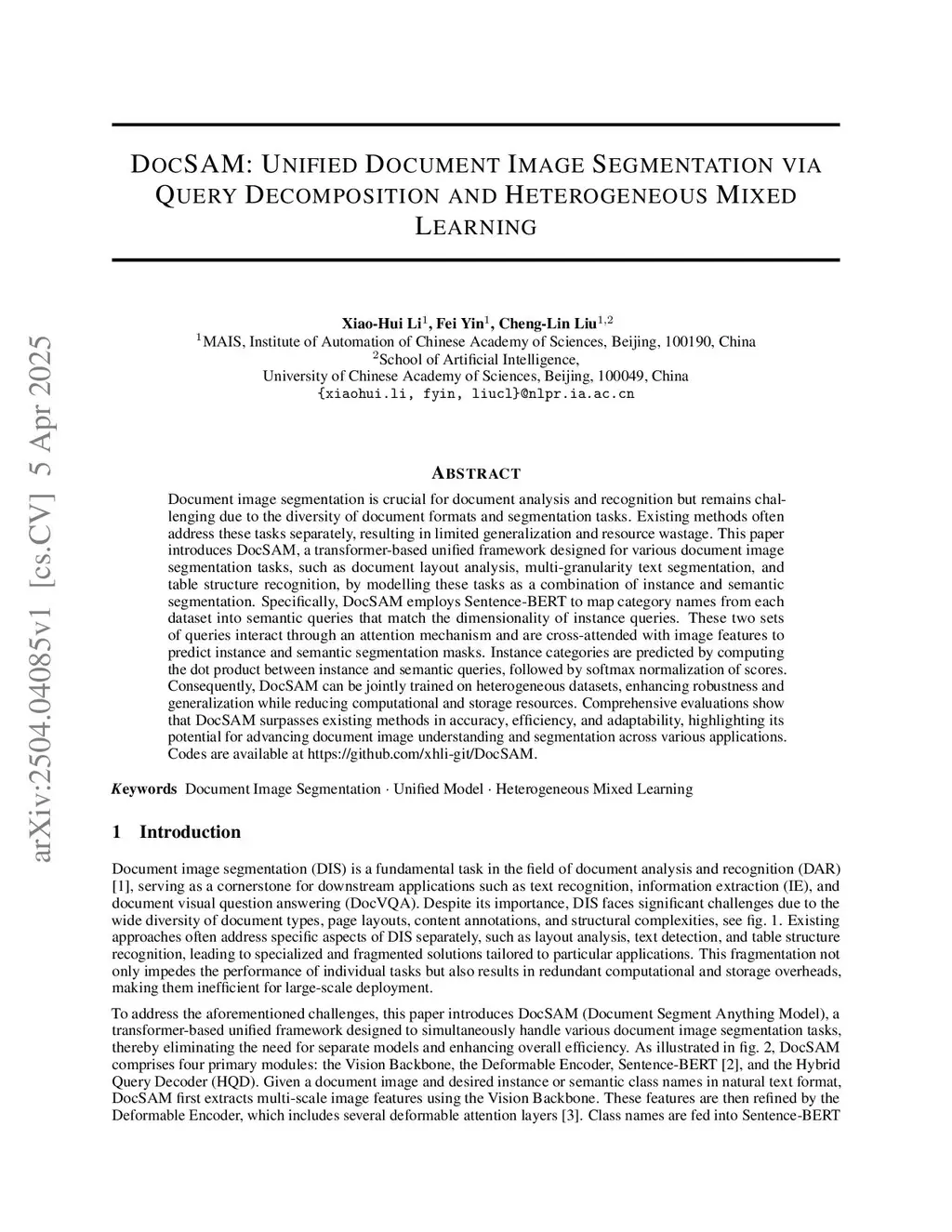 DocSAM: Unified Document Image Segmentation via Query Decomposition and Heterogeneous Mixed Learning