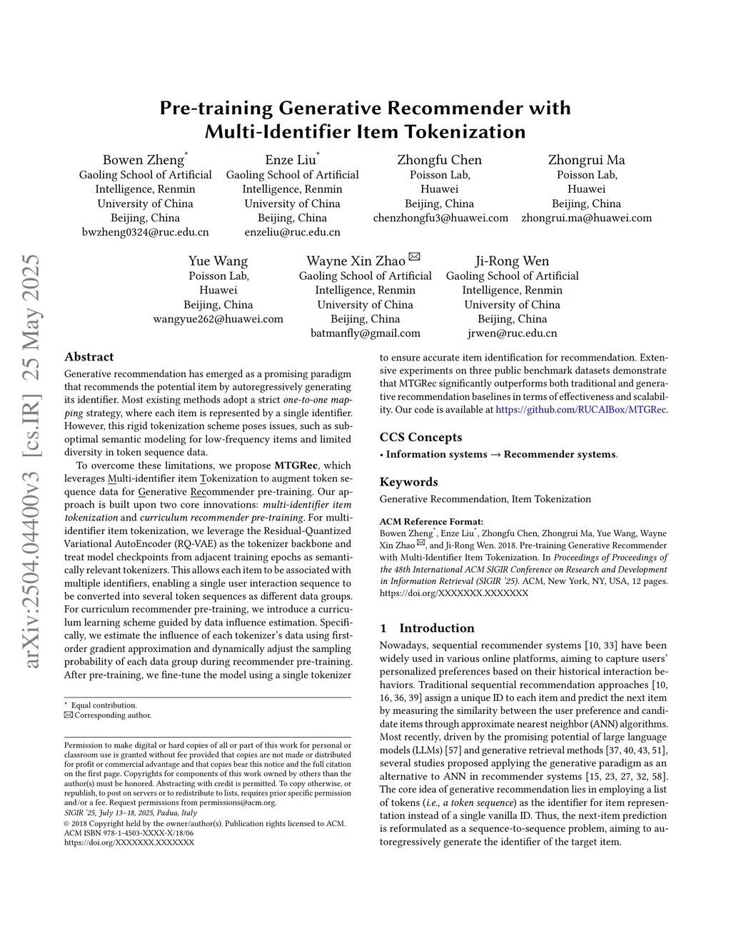 Pre-training Generative Recommender with Multi-Identifier Item Tokenization