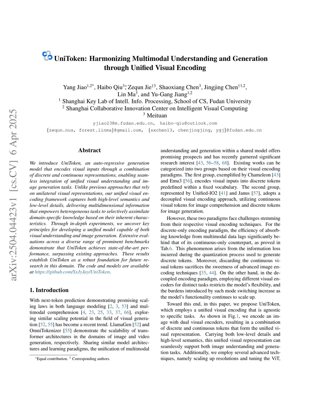We introduce UniToken, an auto-regressive generation model that encodes visual inputs through a combination of discrete and continuous representations, enabling seamless integration of unified visual understanding and image generation tasks. Unlike previous approaches that rely on unilateral visual representations, our unified visual encoding framework captures both high-level semantics and low-level details, delivering multidimensional information that empowers heterogeneous tasks to selectively assimilate domain-specific knowledge based on their inherent characteristics. Through in-depth experiments, we uncover key principles for developing a unified model capable of both visual understanding and image generation. Extensive evaluations across a diverse range of prominent benchmarks demonstrate that UniToken achieves state-of-the-art performance, surpassing existing approaches. These results establish UniToken as a robust foundation for future research in this domain. The code and models are available atthis https URL.