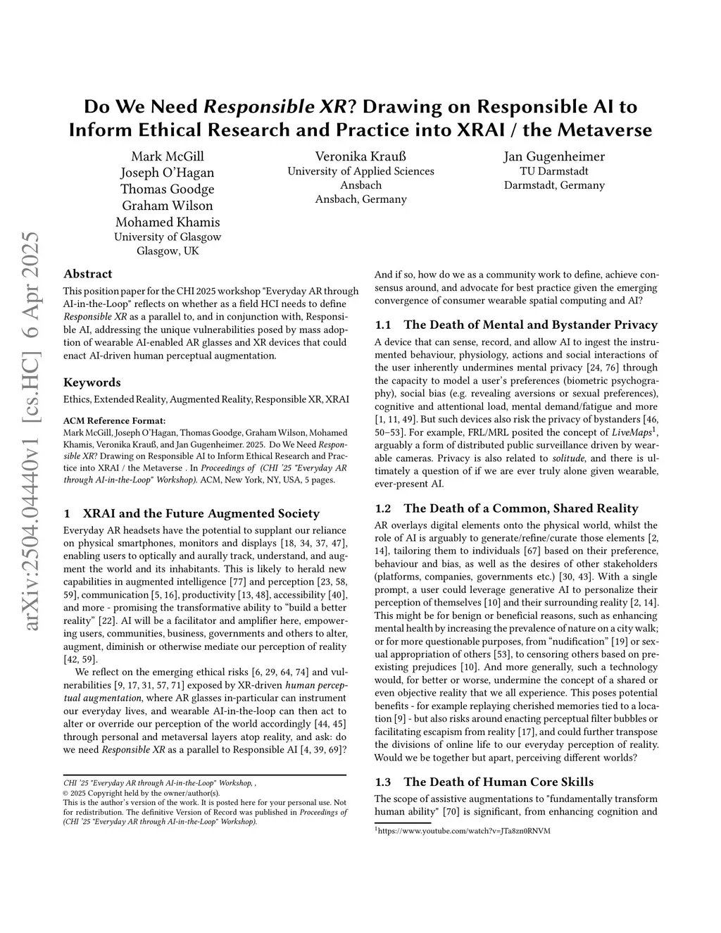 This position paper for the CHI 2025 workshop "Everyday AR through AI-in-the-Loop" reflects on whether as a field HCI needs to define Responsible XR as a parallel to, and in conjunction with, Responsible AI, addressing the unique vulnerabilities posed by mass adoption of wearable AI-enabled AR glasses and XR devices that could enact AI-driven human perceptual augmentation.