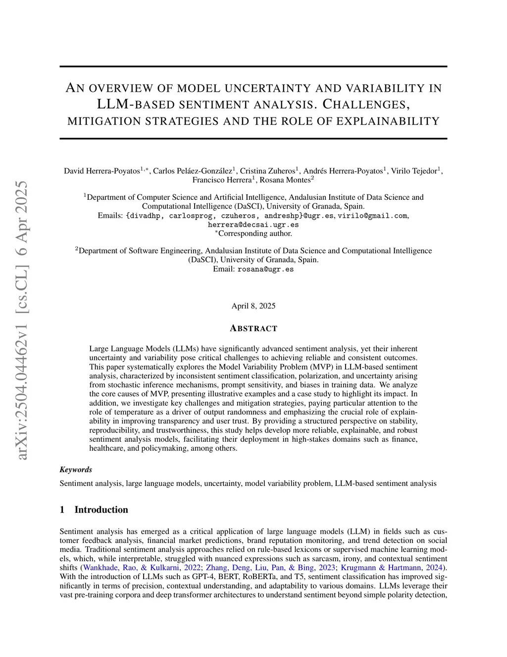 An overview of model uncertainty and variability in LLM-based sentiment analysis. Challenges, mitigation strategies and the role of explainability
